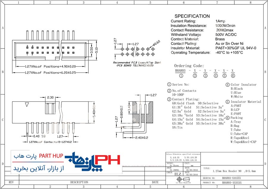 Pitch(فاصله مرکز تا مرکز بین دو پایه): 1.27mm