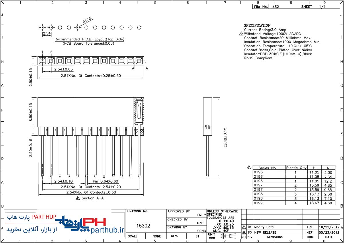 پین هدر مادگی 1x40 صاف بلند 2.54mm