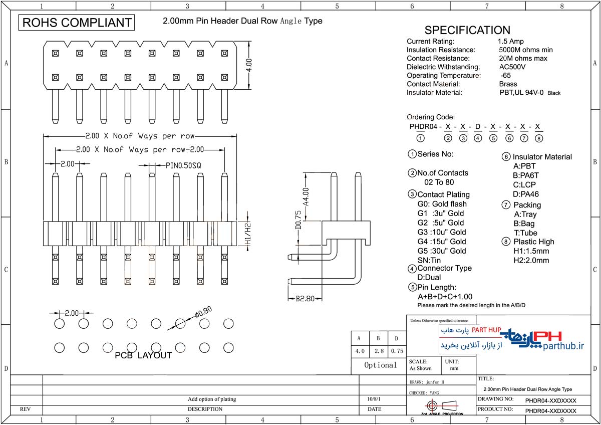 کانکتور پین هدر 2 در 40 پین 2 میلی متر نری نود درجه (رایت انگل-RA)