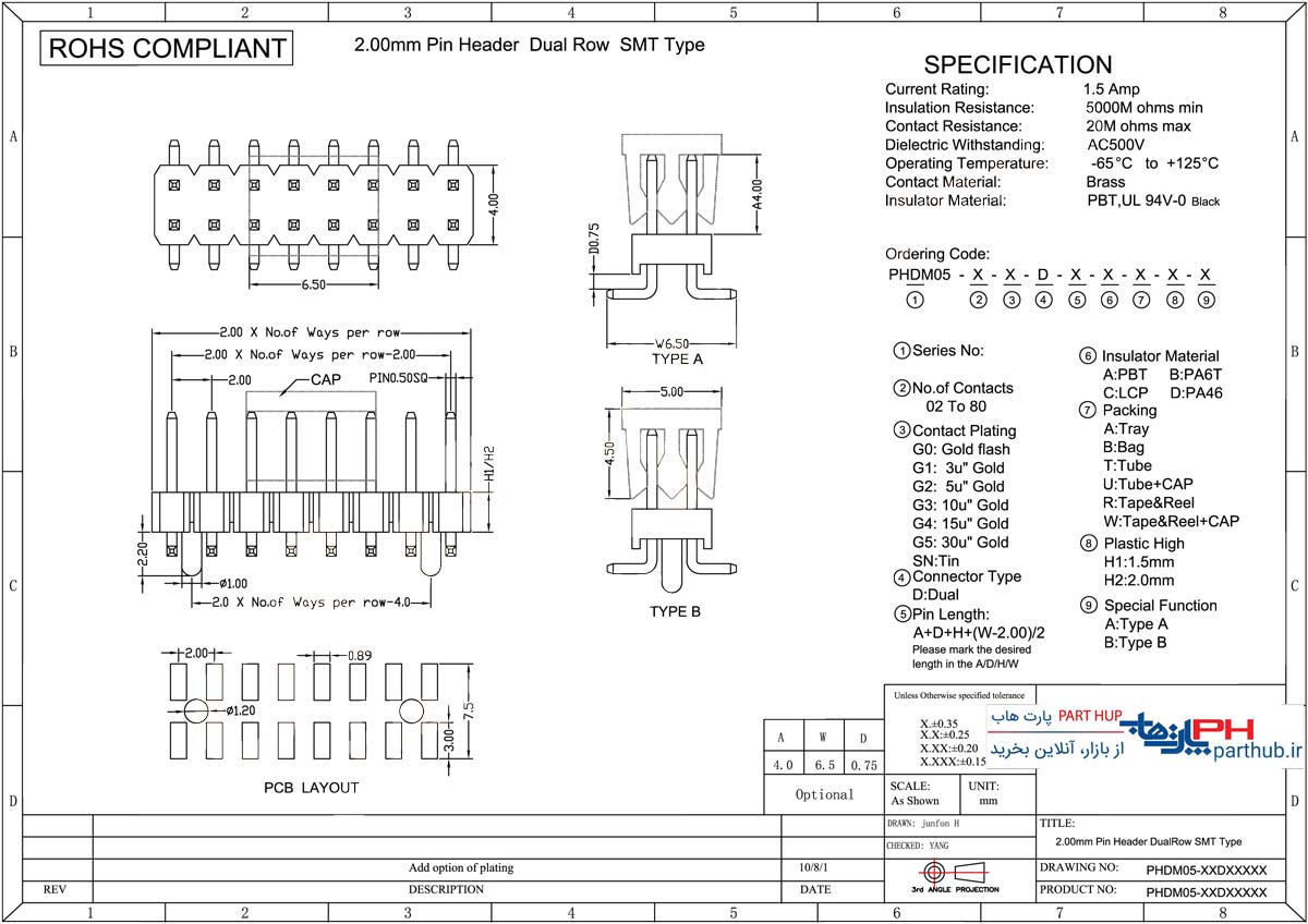 کانکتور پین هدر 2 در 40 پین 2 میلی متر نری اس ام دی (SMD )