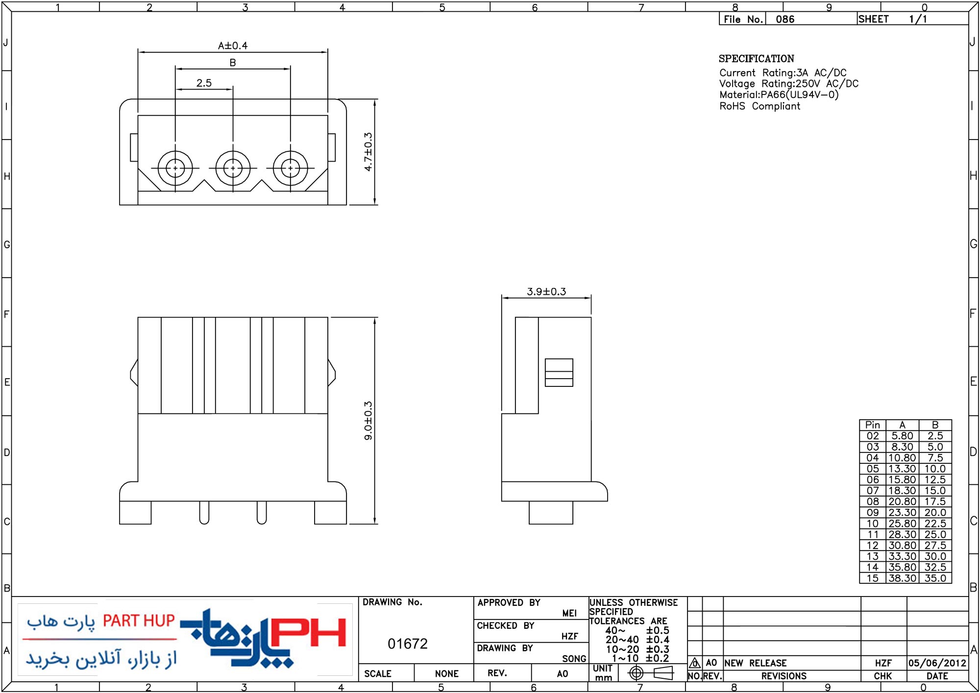 کانکتور پین گرد (5264) ماده 4 پین 2.5 میلی متر