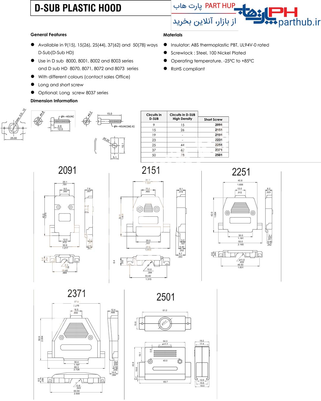 کاور پلاستیکی کانکتور D-sub DB15 سر کابلی پیچی
